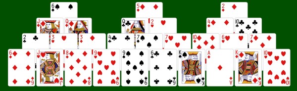 At the start of a game, only the 7 cards in the bottom row of the pyramid are exposed.
